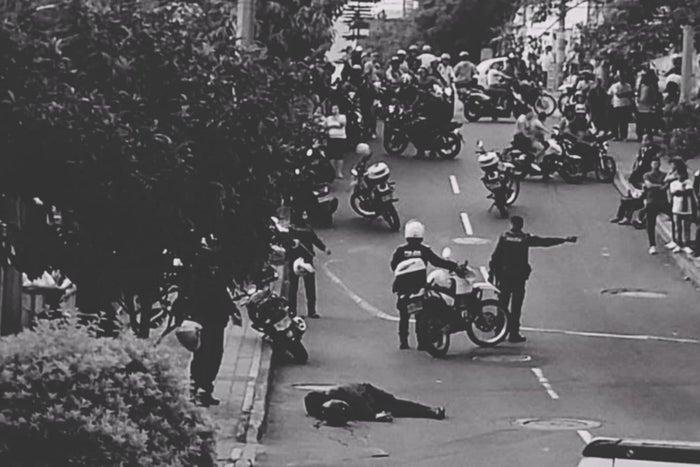 El hecho, que se presentó en plena vía pública de Manrique Central, en la 44 con 74, este acto criminal generó consternación en el sitio, testigos aseguraron que se trataría de un Policía, debido a que vestía botas y chaqueta similares a las que utilizan los uniformados de la institución.