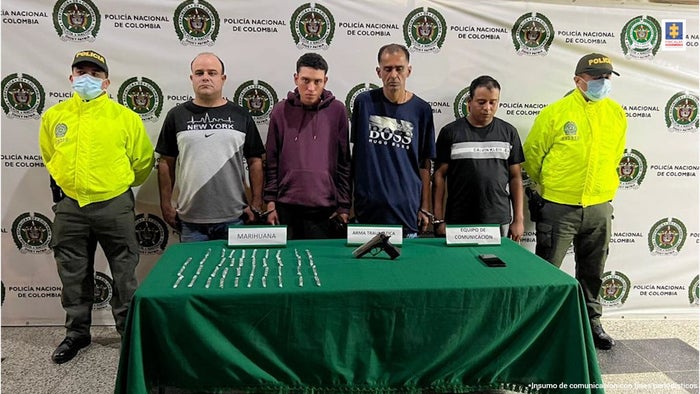 Estas personas harían parte de la estructura criminal “Pachelly”, que delinque en el norte del Valle de Aburrá, quienes son señaladas de tráfico de sustancias alucinógenas, fueron capturadas en un allanamiento realizado en dos inmuebles de los sectores ‘Cancha de fútbol Gorety’ y El bohío, del barrio Pachelly en Bello.En este proceso a estas personas les fueron incautados un arma traumática, 39 cigarrillos de marihuana y un teléfono celular.