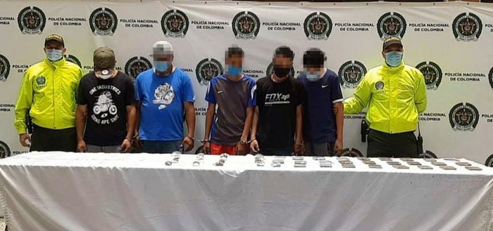 La primera intervención se hizo en el barrio Trinidad de la comuna 15 de Guayabal, allí en ese lugar del sur de la capital antioqueña, fueron capturadas en flagrancia cuatro personas de nacionalidad colombiana de 23, 24 27 y 43 años de edad y dos de nacionalidad venezolana de 18 y 24 años, quienes, al parecer harían parte de combo ‘El Coco’.