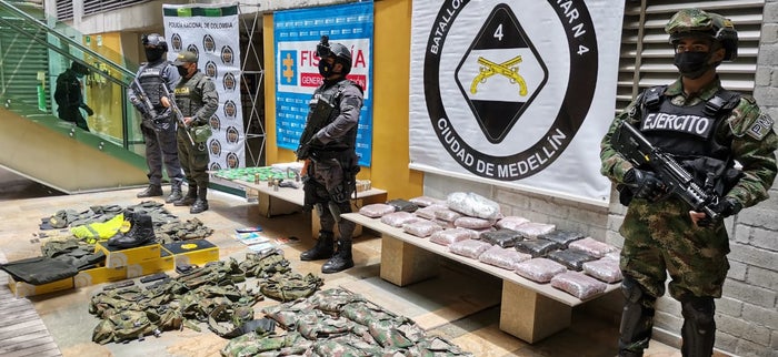 Natalia Rendón, Directora seccional de Fiscalía en Medellín, reveló que en dicho operativo también fueron hallados uniformes completos con insignias de uso privativo de las Fuerzas Militares. Así como varios panfletos que serían distribuidos en el suroeste antioqueño, durante las jornadas de protesta por la celebración del Día del Trabajo este primero de mayo, agregó la funcionaria.