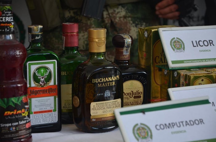 Once botellas de cervezas, whiskey, cajas de ron, algunos licores extranjeros, además de 60 armas corto punzantes, 21 cuadernos donde se llevaban apuntes, cuatro libros, tres grameras y $552.000 en efectivo.