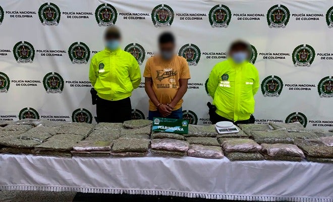 Un operativo adelantado contra el tráfico de estupefacientes dejó la incautación de 101 libras de marihuana prensada y lista para su comercialización y distribución en el barrio Robledo de la comuna siete, en el noroccidente de Medellín.
