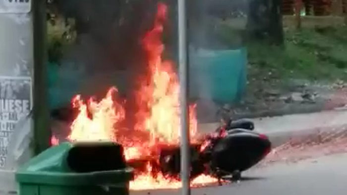 Incineraron una motocicleta de presuntos fleteros en Medellín
