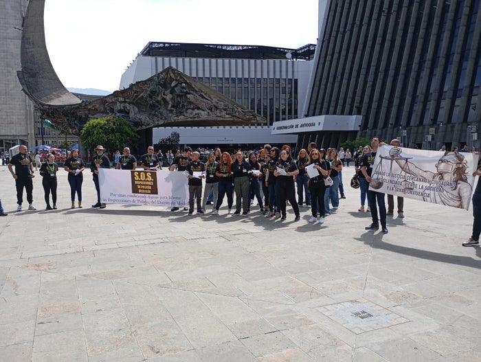 Los inspectores de Policía de Medellín realizaron un plantón frente a la Alcaldía para expresar su desacuerdo con las declaraciones del alcalde Federico Gutiérrez sobre la sanción impuesta al técnico de Atlético Nacional, Efraín Juárez.