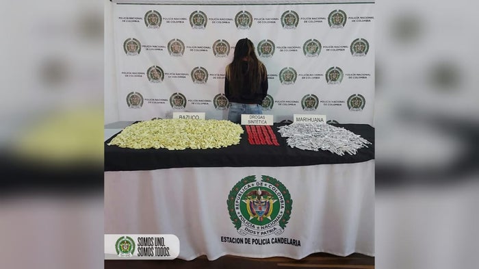 Ante esta alerta, la mujer fue interceptada por la patrulla del cuadrante de ese sector y fue solicitada por los uniformados para verificar que llevaba en las dos bolsas. En este procedimiento fueron hallados, al interior de las mismas 8.480 dosis de bazuco, 800 dosis de marihuana y 400 pastillas de clonazepam.