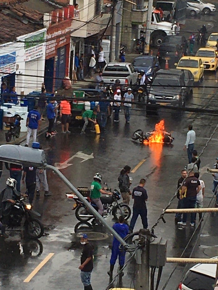 Le quemaron la moto a ladrones que iban a robar una empresa en Medellín