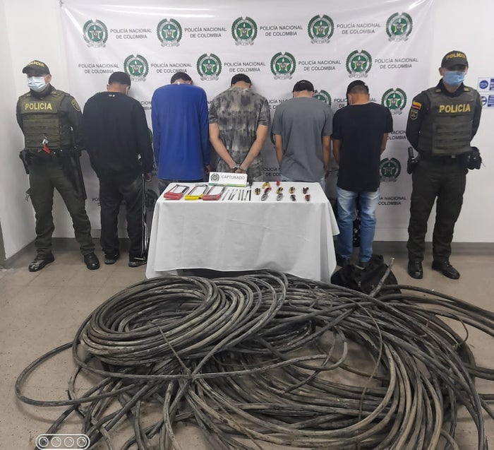 En total fueron recuperados 2.100 metros de cable telefónico, con un peso de 350 kilogramos, con el cual afectaron el servicio de telefonía, televisión e internet de 600 familias, negocios y entidades públicas y privadas del barrio San Fernando, en Itagüí, detalló el oficial.
