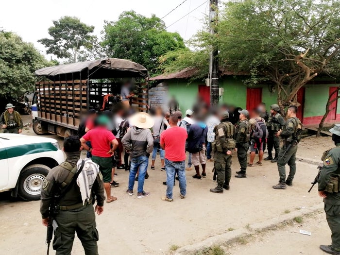El brigadier general Jesús Alejandro Barrera Peña, director de Carabineros y Seguridad Rural de la Policía, manifestó que estas 17 personas, al parecer, serían integrantes del frente “Jader Jesús Erazo” de la subestructura Uldar Cardona Rueda, al servicio del Clan del Golfo.