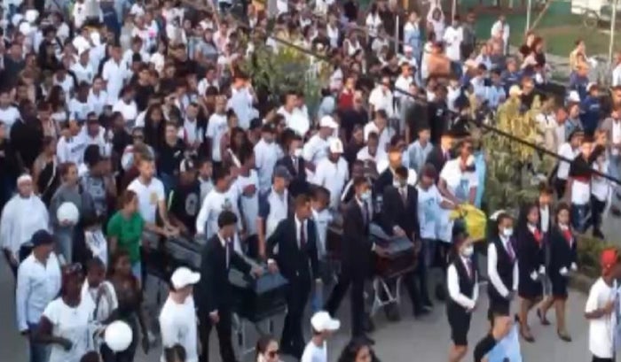 Cientos de personas se reunieron para darle el último adiós a los tres jóvenes asesinados en el municipio de El Bagre. En camino hacia el cementerio municipal, la comunidad pidió que la violencia cese.