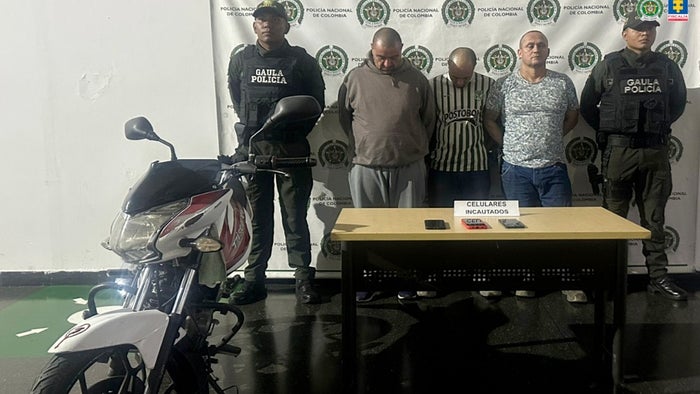 Víctor Alonso Palacio Quicen, Yeison Orlando Posada Bolívar y Leonardo Grajales Montoya fueron señalados por la Fiscalía como presuntos responsables de extorsionar a una mujer a cambio de no evidenciar una supuesta infidelidad.