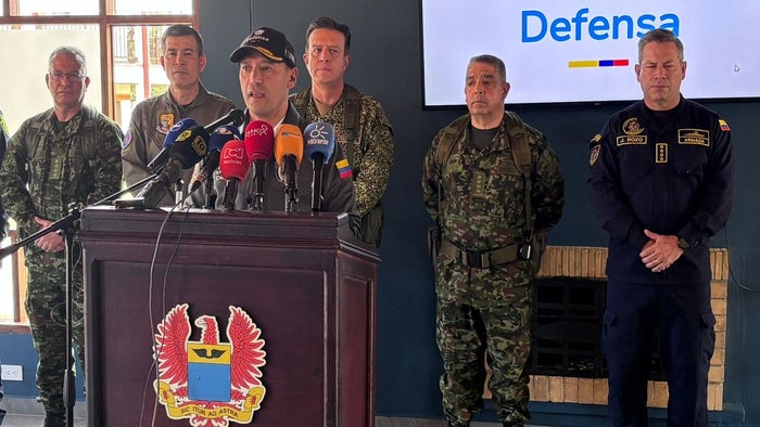 ”En un campo que tenían estos criminales preparado con explosivos causó esta tragedia para toda Colombia. En esta área preparada transitaban ganaderos, ganado y campesinos”, indicó el ministro.