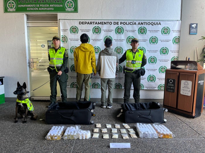 El coronel Óscar Mauricio Rico Guzmán, comandante de la Policía del departamento, detalló que la droga fue detectada por una perra antinarcóticos llamada Moly en el Aeropuerto Internacional, José María Córdova.