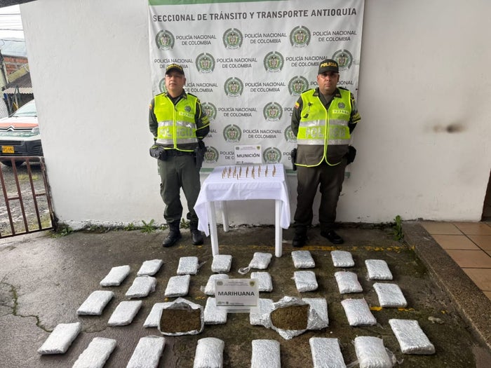 En la vía que conecta La Pintada con Medellín, las autoridades del departamento incautaron 16 kilogramos de marihuana de alta pureza (tipo "creepy") y 47 cartuchos calibre 5.56 milímetros.