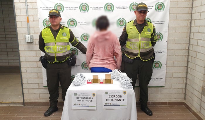 Durante la inspección, los uniformados encontraron en su posesión 400 detonadores ineléctricos y 80 metros de cordón detonante, elementos cuyo porte y transporte están restringidos por la ley.