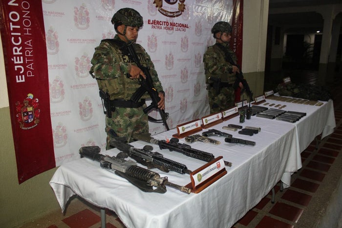 En la operación, las tropas incautaron tres armas largas, tres armas cortas, dos radios de comunicaciones, más de 700 cartuchos de diferentes calibres, 20 proveedores y material de intendencia.