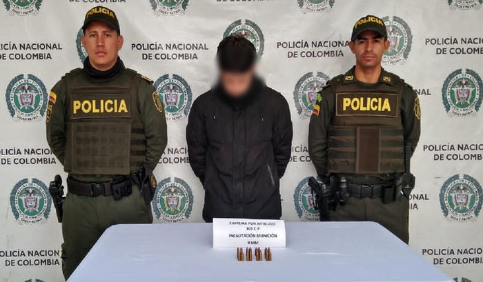 El primer caso, de acuerdo con la Policía Antioquia, ocurrió en Marinilla, donde un joven de 21 años fue sorprendido con 24 cartuchos calibre 9 milímetros.
