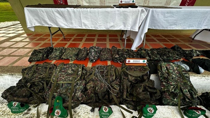 El Ejército incautó en el lugar más de 1400 municiones de diferentes calibres, 10 proveedores, chalecos multipropósito, equipos de campaña, pañoletas, buzos tácticos, uniformes camuflados y brazaletes alusivos a dicho GAO.
