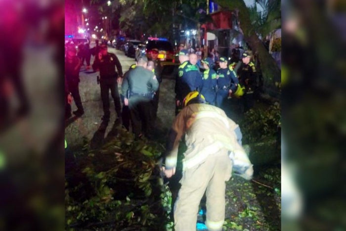 El incidente ocurrió en la noche del lunes, mientras los uniformados realizaban un operativo de requisa en la zona, en medio de fuertes lluvias. Según el Departamento Administrativo de Gestión del Riesgo de Desastres (DAGRD), el árbol pudo haber caído debido a las condiciones climáticas adversas.