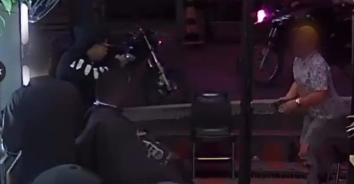 El incidente fue captado por las cámaras de seguridad del establecimiento. Según las imágenes, un sujeto que se movilizaba como parrillero en una motocicleta se acercó directamente a la víctima. Sin mediar palabra, el asaltante desenfundó un arma de fuego y, de forma intimidante, le arrebató la joya al cliente antes de huir rápidamente del lugar junto con el conductor de la moto.