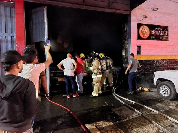 Incendio en un taller de Medellín afectó tres vehículos, entre ellos un carro de la Policía
