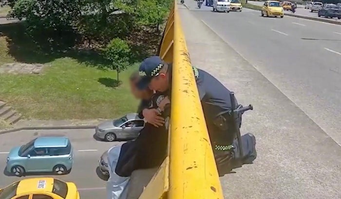 Cortesía Meval Uniforme de héroe: Policía evitó que joven se lanzara desde un puente en Medellín