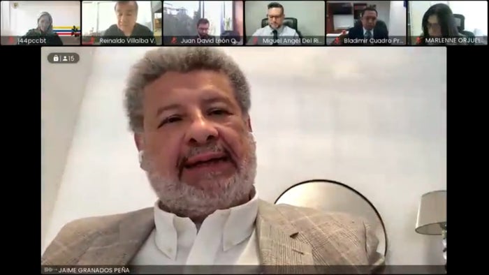 Captura de audiencia virtual en juzgados Abogado Jaime Granados en audiencia contra Uribe