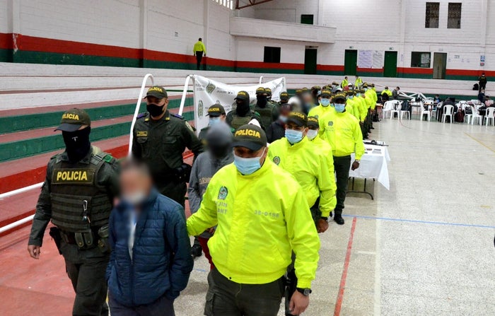 Los capturados fueron dejados a disposición de las autoridades competentes, quienes deberán responder por delitos de concierto para delinquir agravado, extorsión, desaparición, tráfico, fabricación o porte de estupefacientes y Porte tráfico o fabricación de porte de armas y municiones, informó el comando de la Policía Antioquia.