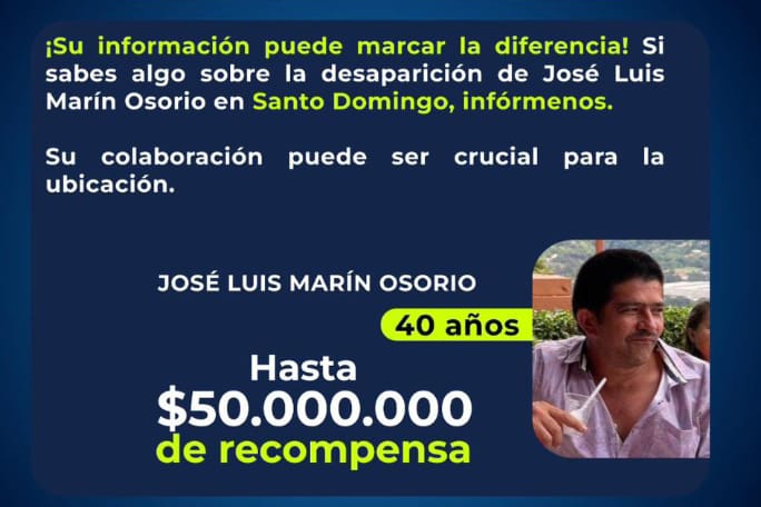 Se ofrecen $50 millones para aquella persona que informe el paradero de José Luis Marín Osorio