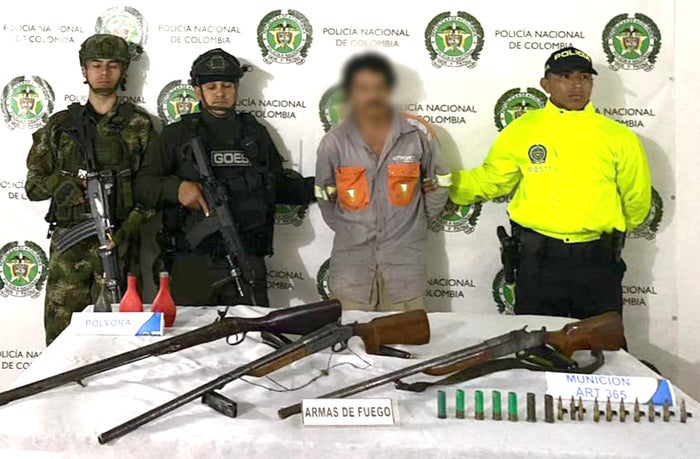 Como resultado también se incautaron dos armas de fuego tipo escopeta, una pistola, siete cartuchos calibre 16 y 10 cartuchos calibre 5.56.