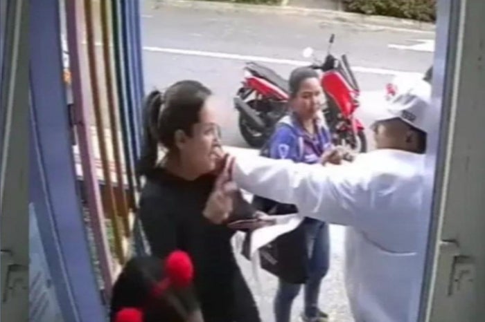 El hecho quedó registrado en cámaras de seguridad del sector, donde se observa el instante en que el sujeto intimida a las víctimas y las despoja de varias pertenencias.