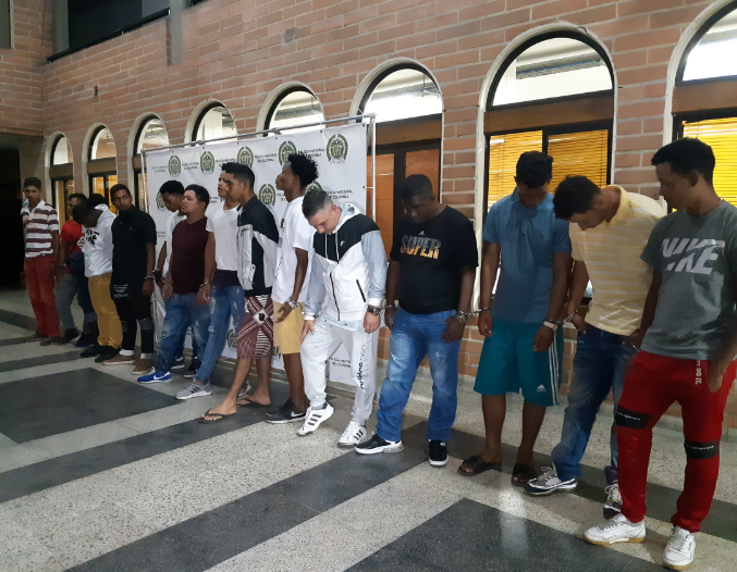 Entre los detenidos hacen parte estructuras criminales conocidas como: ‘Los Cocuelos’ o ‘Intocables’; ‘Los Tatos’, ‘Las Gatas’, ‘Los Electrónicos’ y ‘La Imperial’, dedicados al delito de hurto; ‘Los Carabanudos’ y ‘El Morro’ o ‘Villa Flora’, inmersos en el tráfico de estupefacientes, y ‘Pachelly’, los ‘Mondongueros’, ‘La 38’, ‘Joaquinillos’ y ‘Las Independencias’, involucrados en los delitos de homicidio y extorsión.