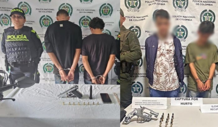 En el caso de Rionegro capturaron a dos jóvenes de 18 y 19 años respectivamente, deberán responder por los delitos de hurto, tráfico, fabricación y/o porte de armas de fuego.