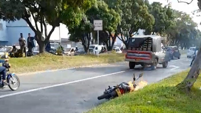 Según las versiones preliminares, los señalados asaltantes, aprovechando el alto tráfico vehícular, estaban hurtando las pertenencias de los ocupantes de un vehiculo y en ese precisó momento, un motociclista que se percató del hecho los impactó con su automotor.
