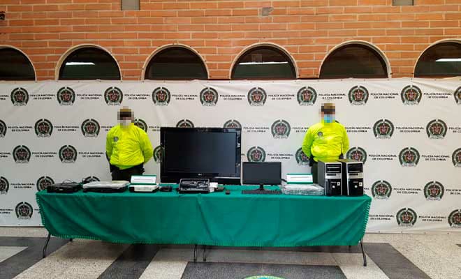 La policía recuperó los elementos de tecnología hurtados por delincuentes en la Casa de la Cultura del corregimiento de Altavista, occidente de Medellín.
