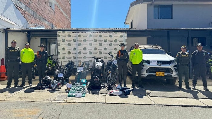 En el lugar se recuperaron cuatro motocicletas, una camioneta y 50 partes de motos, además, se incautaron tres celulares, tres cédulas de ciudadanía, una caja de herramientas y un soplete.