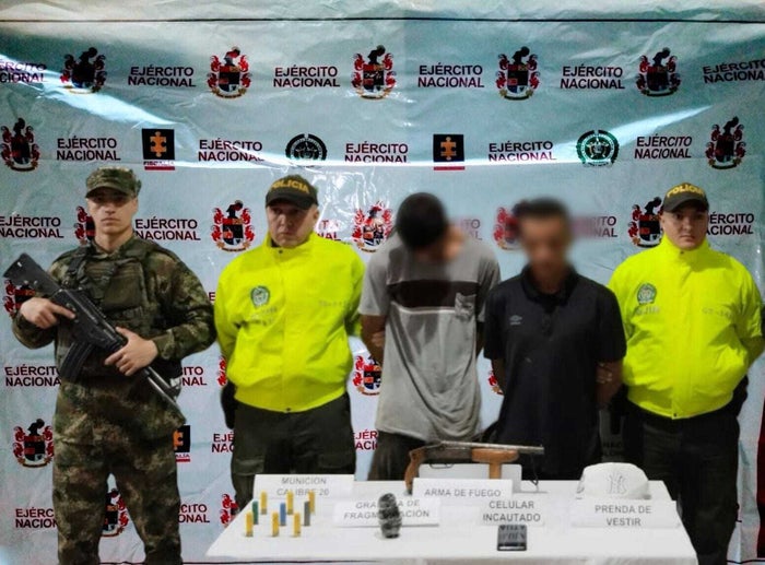 Las autoridades indicaron que los señalados serían dos ciudadanos venezolanos, los cuales fueron sorprendidos en la vereda La Honda, zona rural del municipio de Urrao. Además, durante el procedimiento les fueron hallados una granada de fragmentación, un changón, 9 cartuchos y un celular.