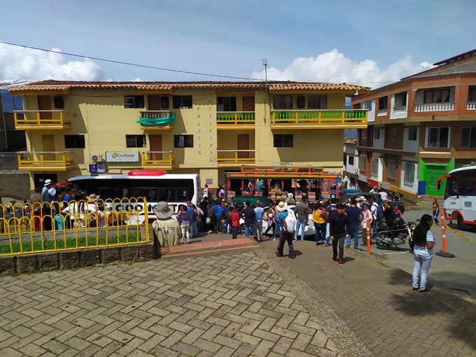 Cortesía @FunSumapaz. Llegada de desplazados al casco urbano de Ituango, Antioquia.