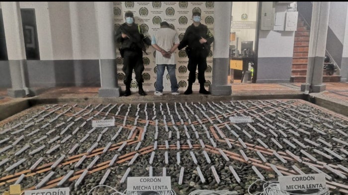 El capturado fue puesto a disposición de la Fiscalía General de la Nación por los delitos de fabricación, tráfico y porte de armas, municiones de uso restringido, de uso privativo de las fuerzas armadas o explosivos, informaron las autoridades.