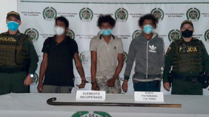 En el momento en que fueron capturados a uno de los procesados se le incautó un bastón de bronce que habría sido desprendido de la mencionada obra.