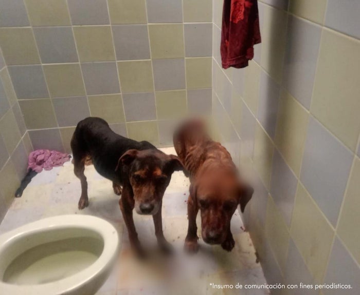 Unidades de la Policía Nacional llegaron a la vivienda, y encontraron a otros dos perros encerrados en un baño, con cortaduras en el cuerpo, un avanzado cuadro de desnutrición y uno de ellos presentaba signos de posible agresión sexual.