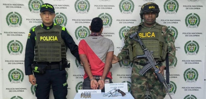 Durante el operativo, las autoridades se incautaron un arma de fuego tipo revolver calibre 38 y municipios para la misma.