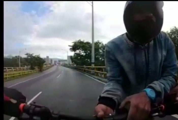 Un joven deportista grabó el momento exacto que tres delincuentes le quitan su bicicleta en el puente de la avenida Guayabal, suroccidente de Medellín.