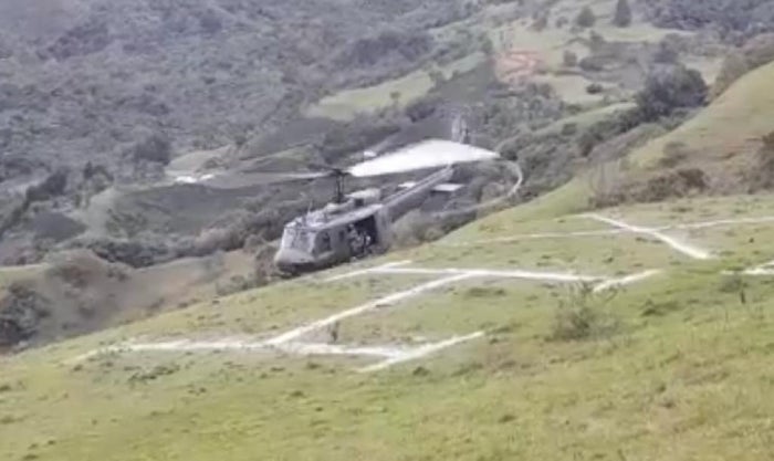 Un helicóptero del Ejército casi se estrella cuando llevaba ayuda humanitaria a las personas damnificadas por el deslizamiento de tierra, registrado en la vereda Laureles del municipio de Santa Fe de Antioquia, occidente de Antioquia.