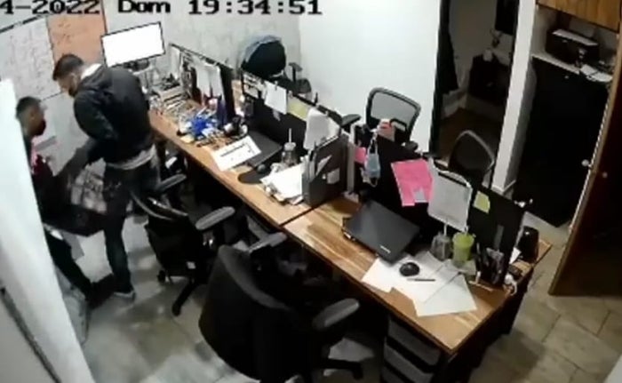 En un video de seguridad muestra el instante en que los dos delincuentes, luego de salir por un hueco, hurtaron los equipos de cómputo instalados en esa oficina.