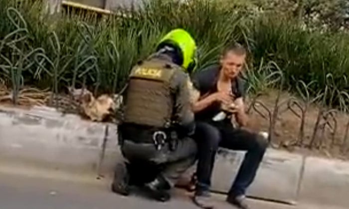 Un taxista de Medellín grabó el instante en que un patrullero de la policía compartió su almuerzo con un habitante de calle en un sector de la Avenida Oriental, centro de la ciudad.