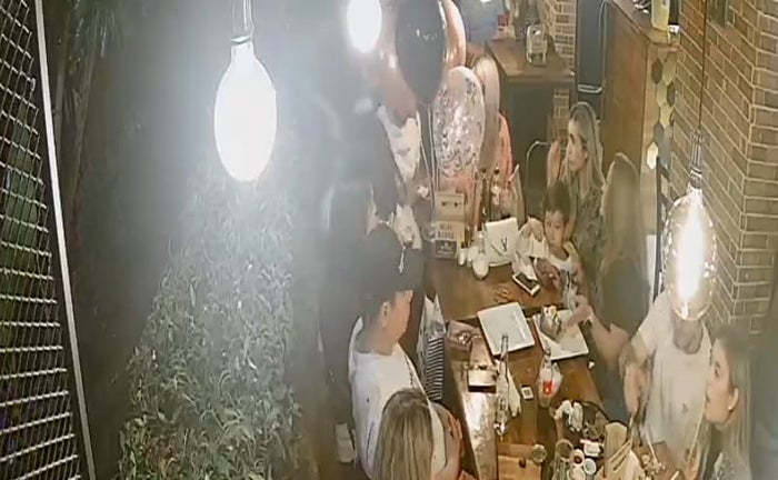 Una cámara de seguridad grabó el instante en que varios delincuentes hurtaron celulares y objetos a varias personas que festejan un cumpleaños en un restaurante del barrio Laureles de Medellín.