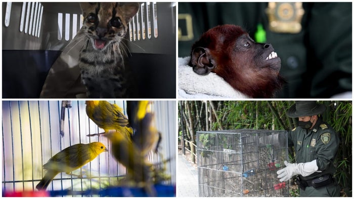 Un mono aullador, una tigrilla, 15 pericos y 6 canarios, fueron rescatados en varios operativos realizados en contra del tráfico ilegal de animales silvestres en el Valle de Aburrá.