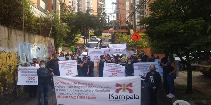 72 familias el edificio Kampala en Medellín, protestaron para que la constructora les responda por sus hogares