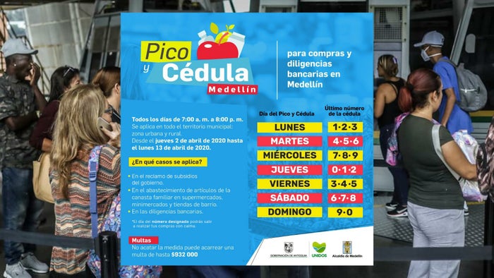 Anunció el alcalde de Medellín, Daniel Quintero Calle, que desde el jueves 2 de abril en la ciudad se comenzará a implementar el pico y cédula para abastecerse, realizar diligencias bancarias o reclamar subsidios.