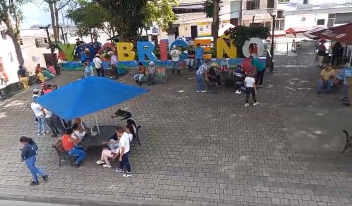 Tomado de @soydeituango. Población desplazada ubicada en parque principal de Briceño.